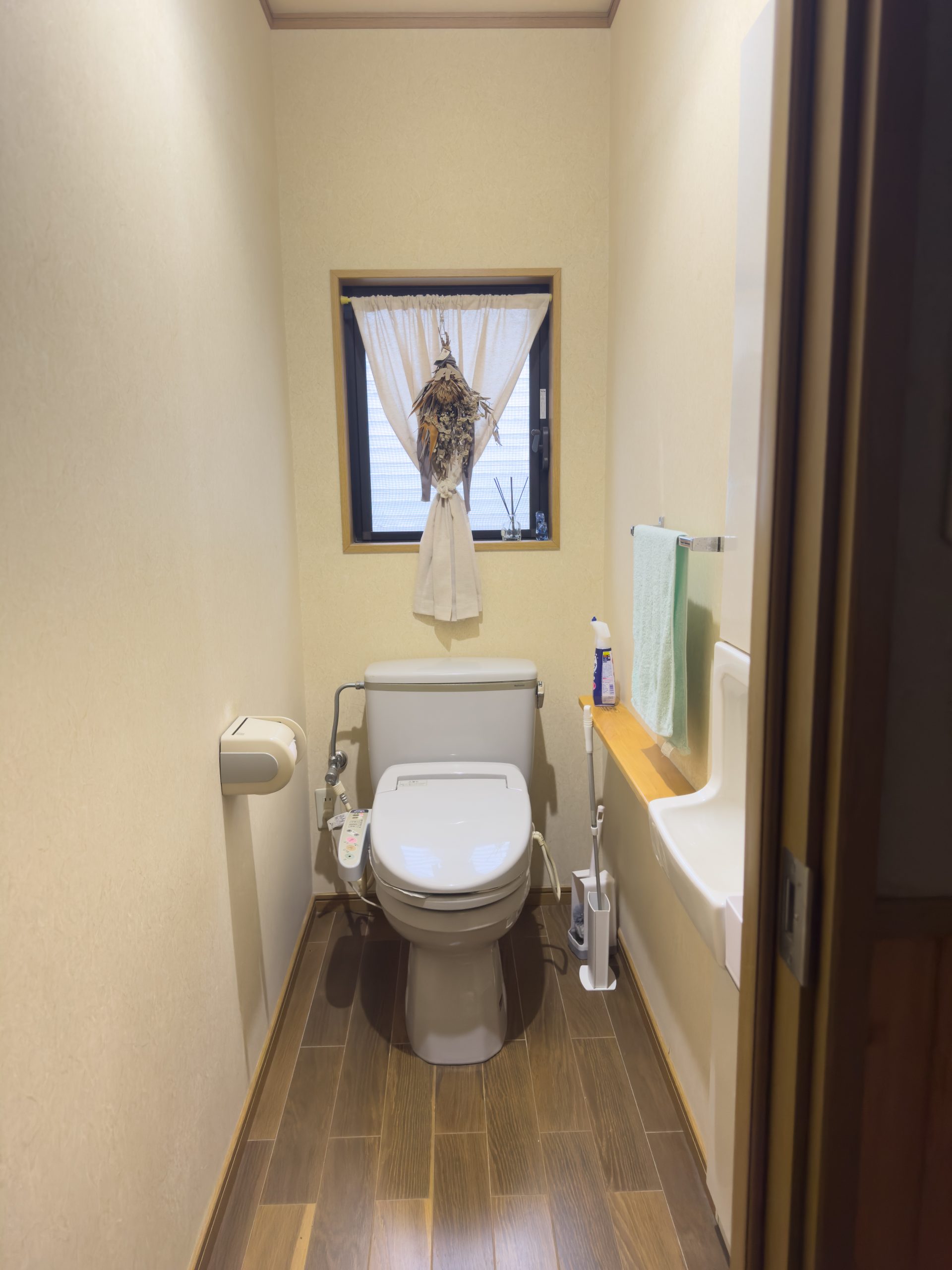 せっかくトイレの交換をするならと、せっかくの機会なので壁紙と床も張り替え、行い明るいトイレに生まれ変わりました。