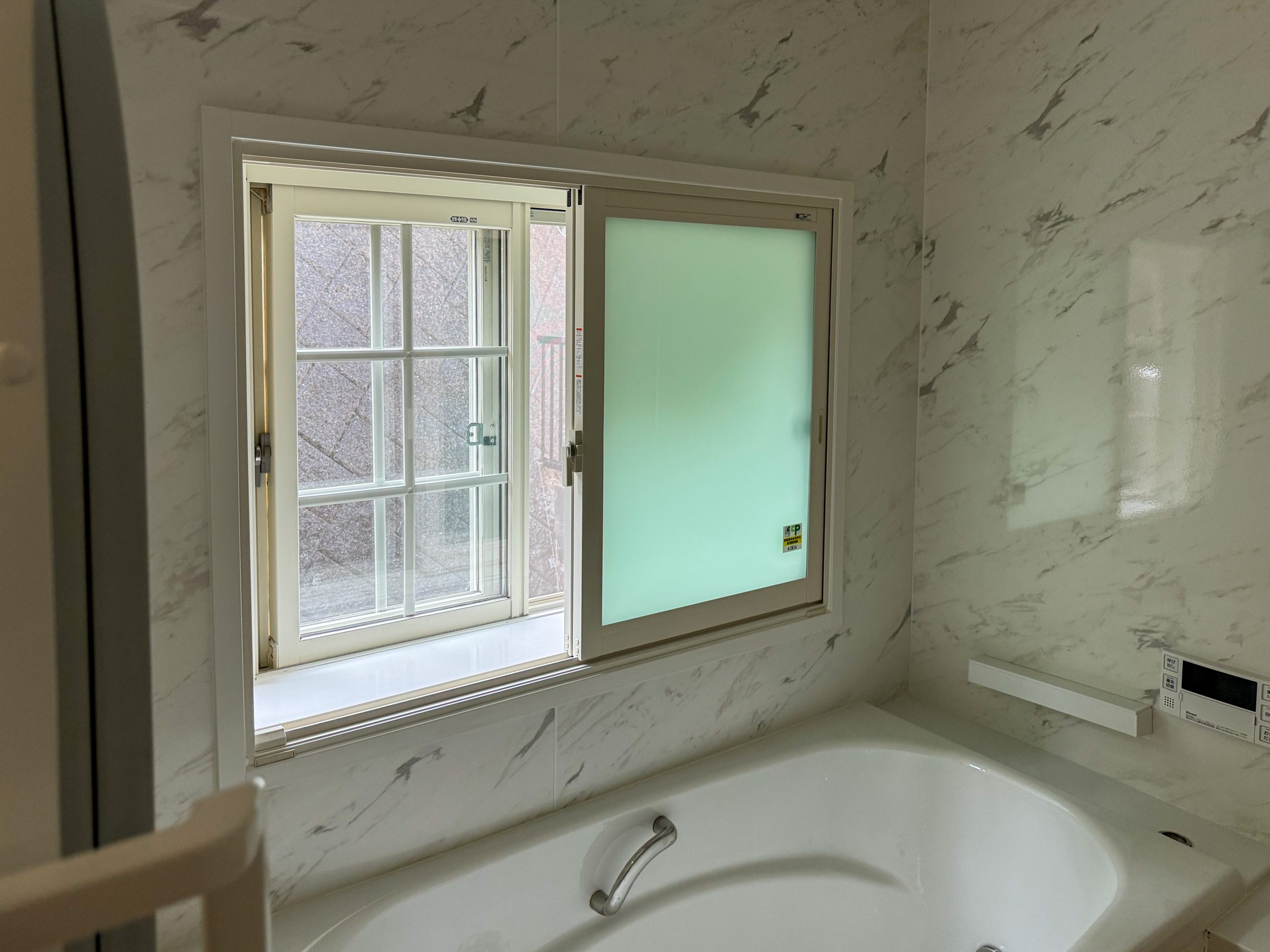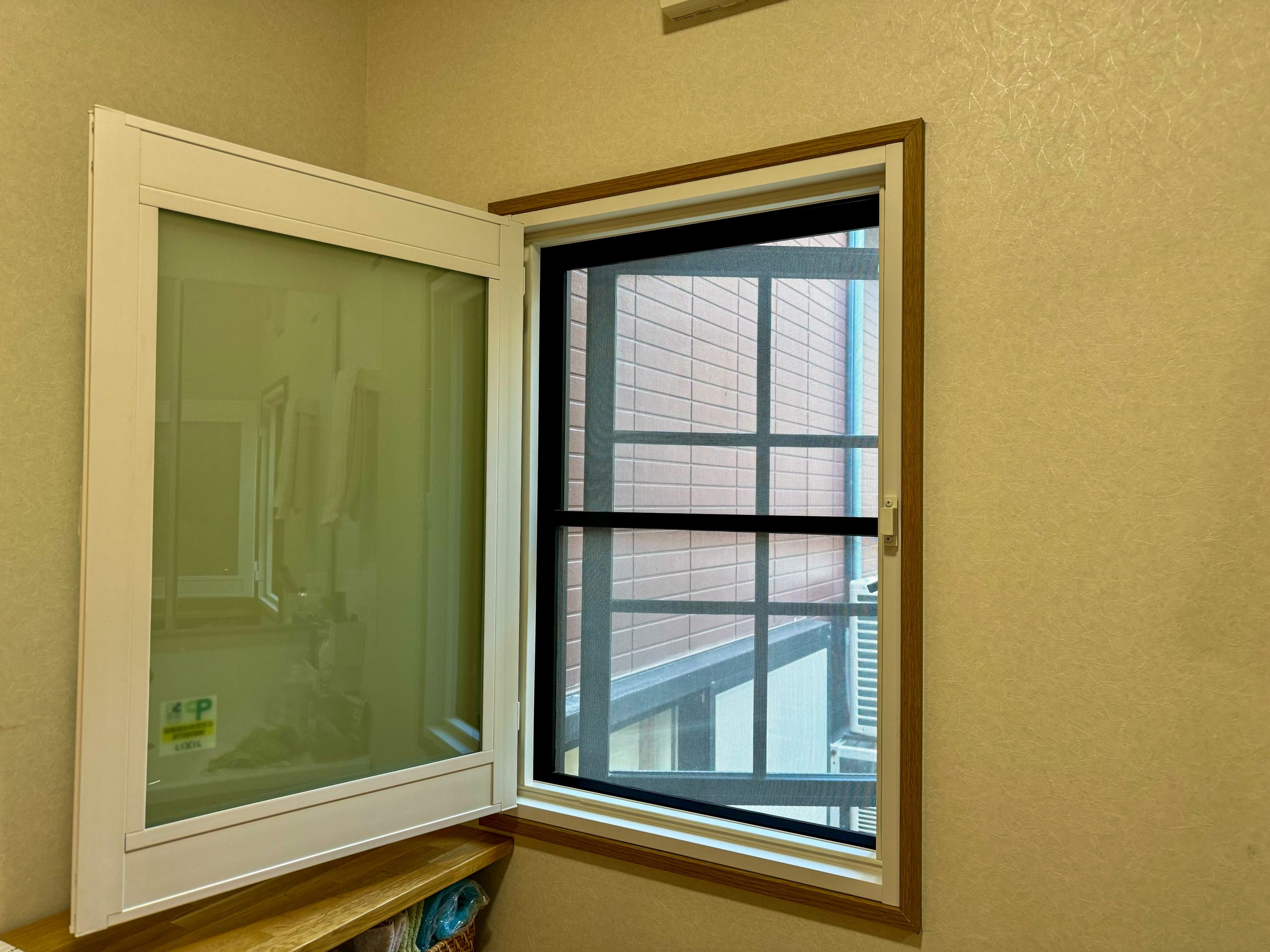 内窓の設置は、冬が寒くて辛いとお困りだった浴室と脱衣室に行いました。